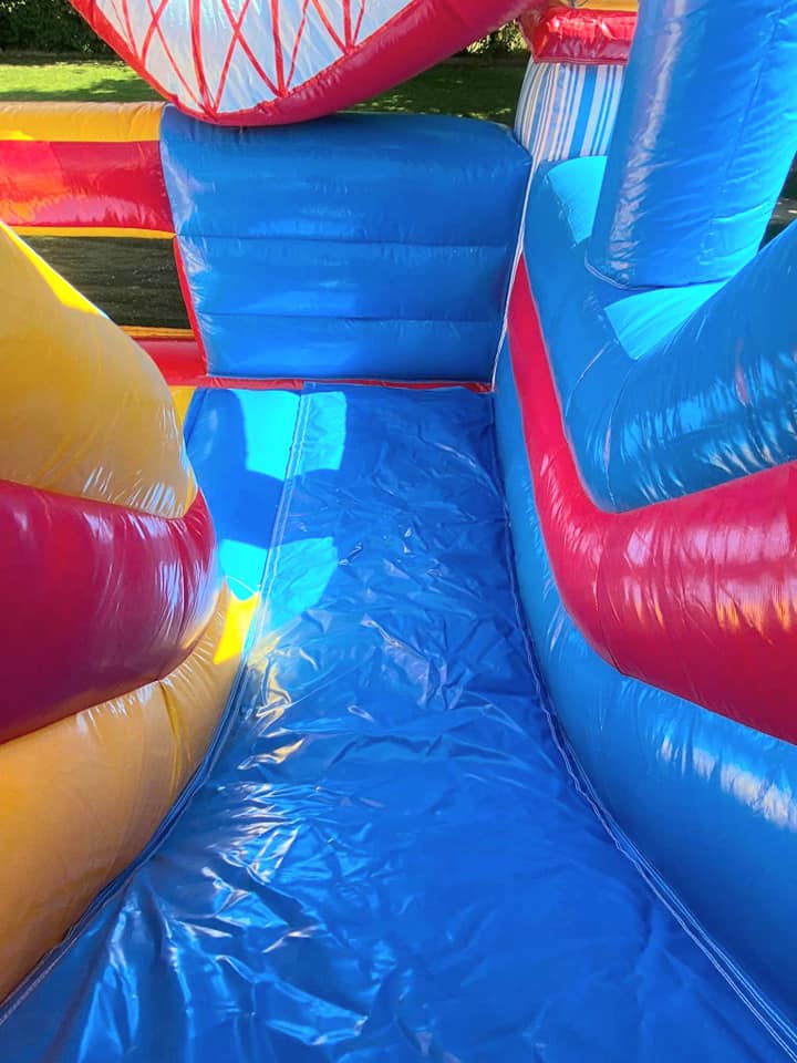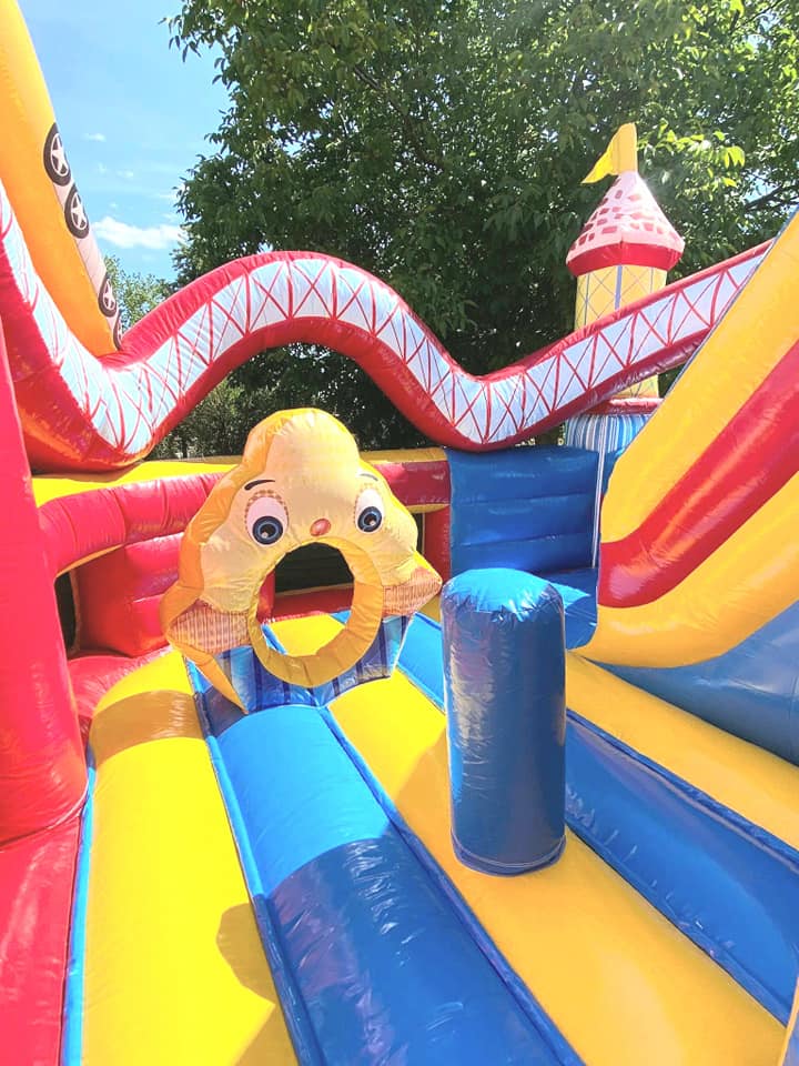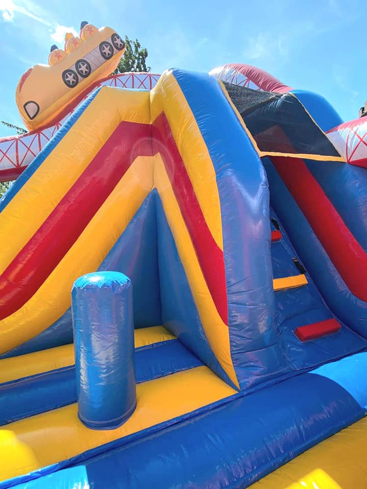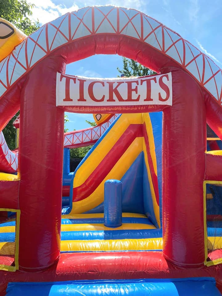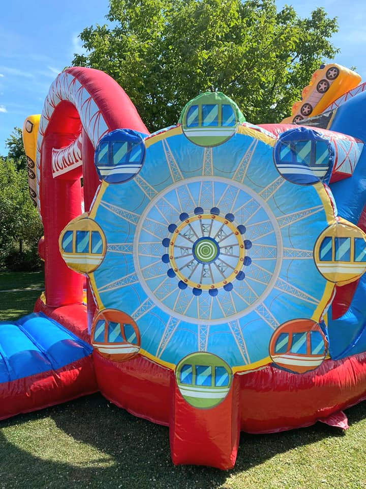 Amenez la fête foraine à votre évènement grâce à notre château au joli design de par sa grande roue, ses montagnes russes colorées et de ses couleurs attractives ! Ce château multiplay comporte des obstacles, un escalier et un toboggan intérieur.