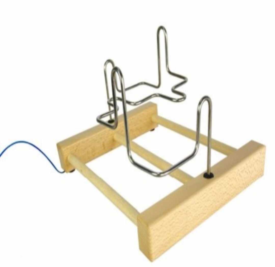 Le principe est simple, le joueur tient un manche en bois sur lequel est fixé une tige qui présente un anneau en son extrémité. Le but est de longer un parcours formé par le fil électrique sans que celui-ci ne touche l’anneau. Sinon, le jeu se met à sonner !
